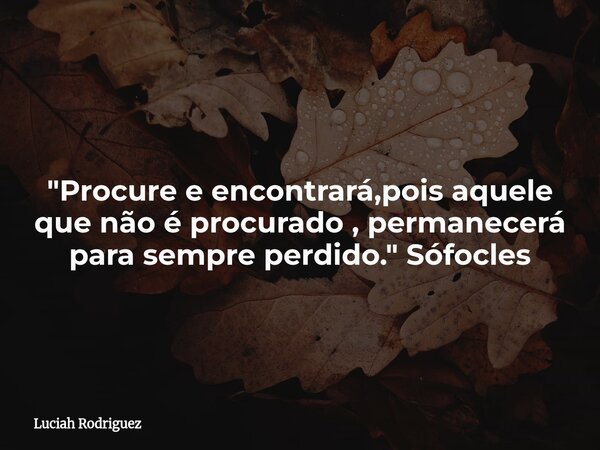 "Procure e encontrará,pois aquele que não é procurado , permanecerá para sempre perdido." Sófocles