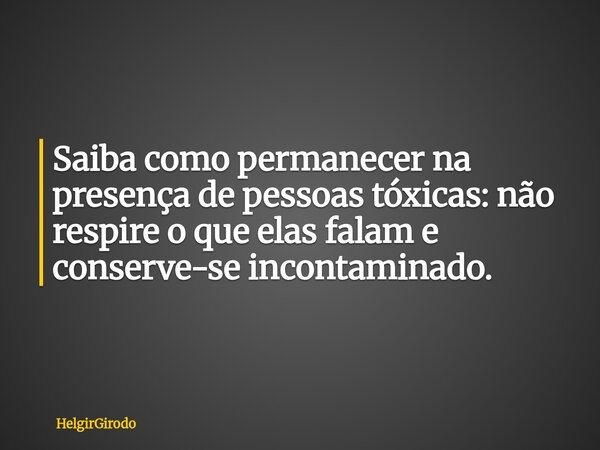 Saiba como permanecer na presença de pessoas tóxicas: não respire o que elas falam e conserve-se incontaminado.