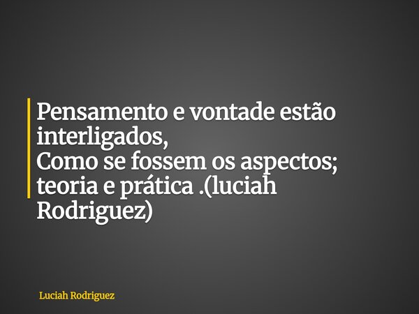 Pensamento e vontade estão interligados, Como se fossem os aspectos; teoria e prática .(luciah Rodriguez)