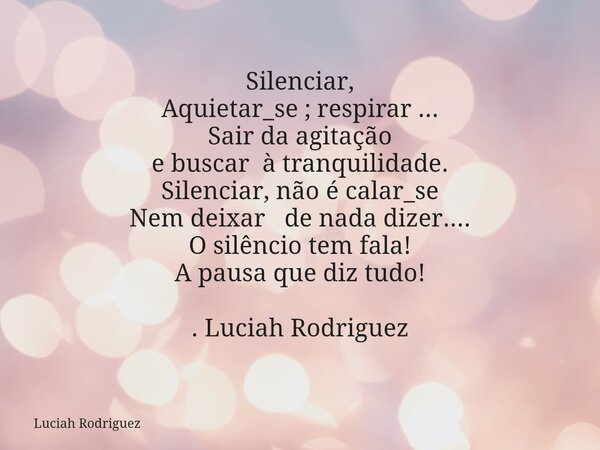 Silenciar, Aquietar_se; respirar... Sair... Luciah Rodriguez