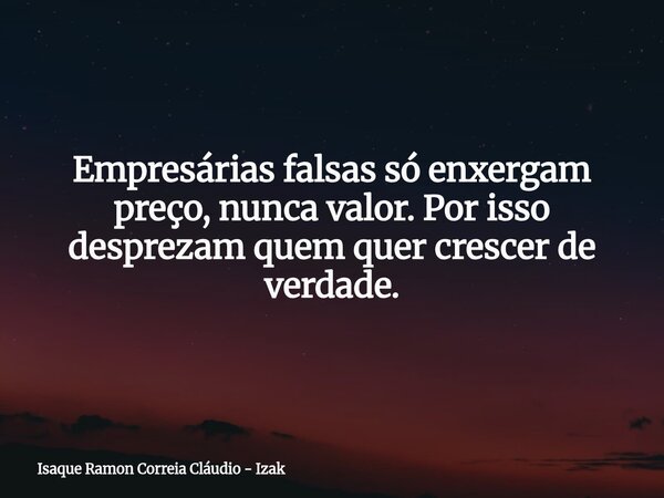 Empresárias falsas só enxergam preço, nunca valor. Por isso desprezam quem quer crescer de verdade.