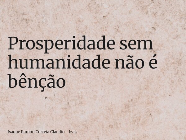 Prosperidade sem humanidade não é bênção