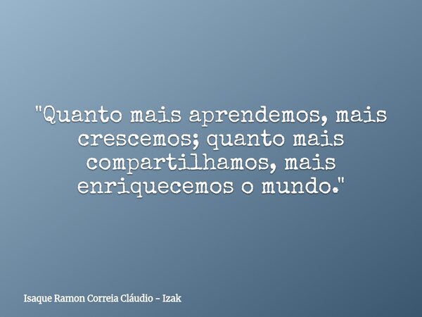 "Quanto mais aprendemos, mais crescemos; quanto mais compartilhamos, mais enriquecemos o mundo."