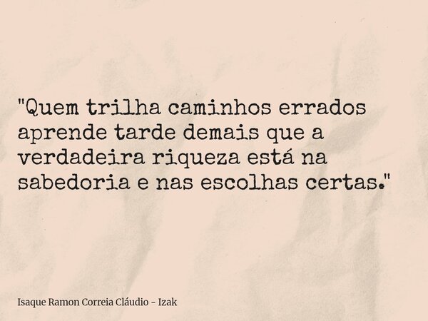 "Quem trilha caminhos errados aprende tarde demais que a verdadeira riqueza está na sabedoria e nas escolhas certas."