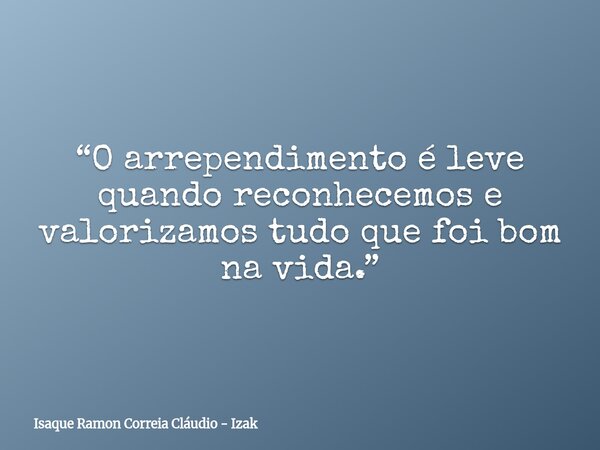 “O arrependimento é leve quando reconhecemos e valorizamos tudo que foi bom na vida.”