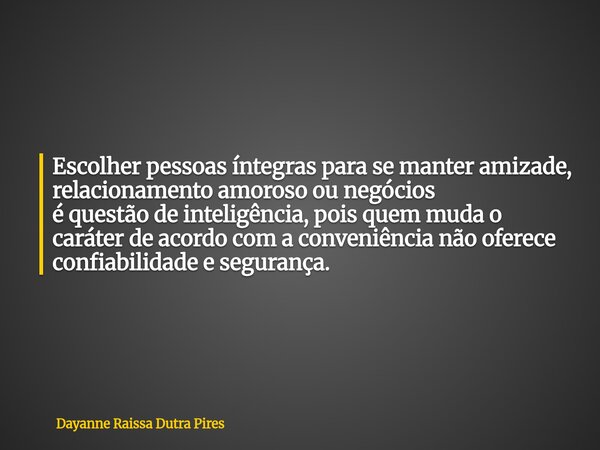Escolher pessoas íntegras para se... Dayanne Raissa Dutra Pires