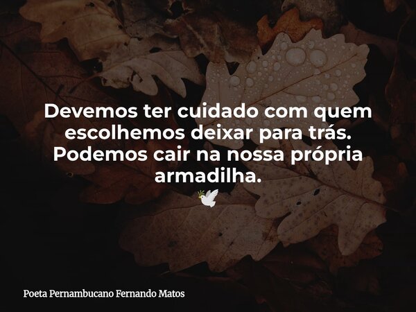 Devemos ter cuidado com quem escolhemos deixar para trás. Podemos cair na nossa própria armadilha. 🕊