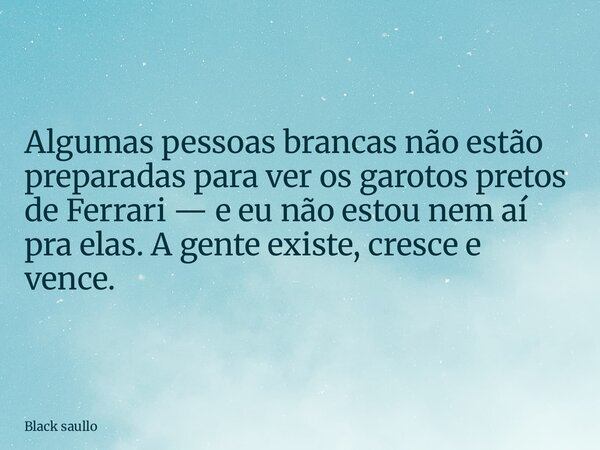 Algumas pessoas brancas não estão preparadas para ver os garotos pretos de Ferrari — e eu não estou nem aí pra elas. A gente existe, cresce e vence.