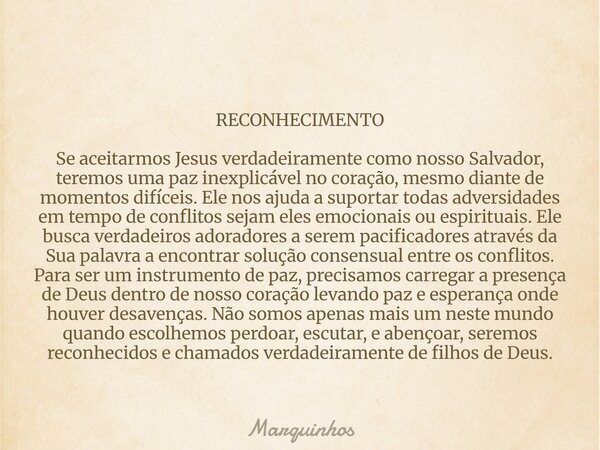 RECONHECIMENTO Se aceitarmos Jesus... Marquinhos