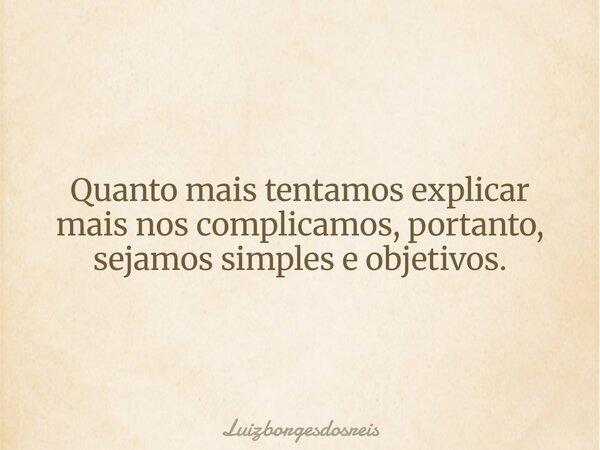 Quanto mais tentamos explicar mais nos complicamos, portanto, sejamos simples e objetivos.
