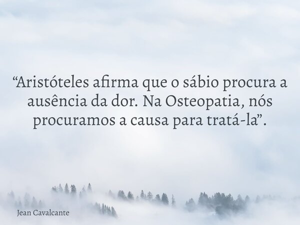 “Aristóteles afirma que o sábio procura a ausência da dor. Na Osteopatia, nós procuramos a causa para tratá-la”.