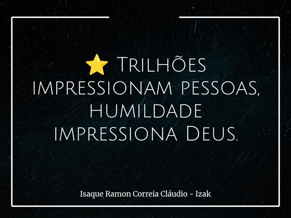 ⭐ Trilhões impressionam pessoas, humildade impressiona Deus.