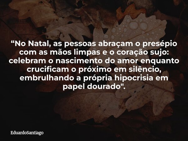 “No Natal, as pessoas abraçam o presépio com as mãos limpas e o coração sujo: celebram o nascimento do amor enquanto crucificam o próximo em silêncio, embrulhando a própria hipocrisia em papel dourado".