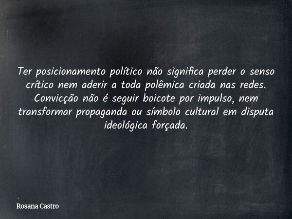 Ter posicionamento político não significa perder o senso crítico nem aderir a toda polêmica criada nas redes. Convicção não é seguir boicote por impulso, nem transformar propaganda ou símbolo cultural em disputa ideológica forçada.