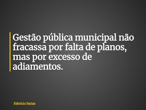 Gestão pública municipal não fracassa por falta de planos, mas por excesso de adiamentos.