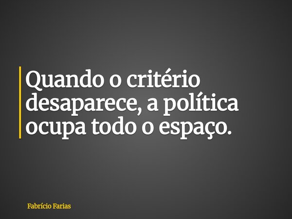 Quando o critério desaparece, a política ocupa todo o espaço.