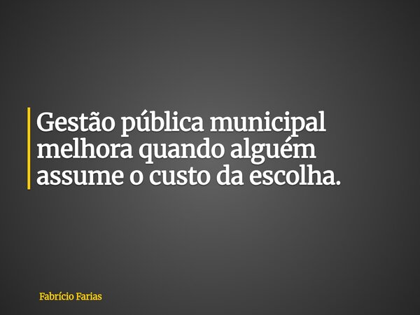 Gestão pública municipal melhora quando alguém assume o custo da escolha.