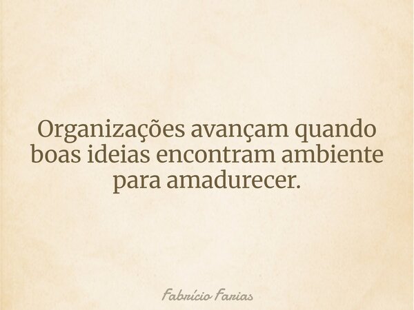Organizações avançam quando boas ideias encontram ambiente para amadurecer.