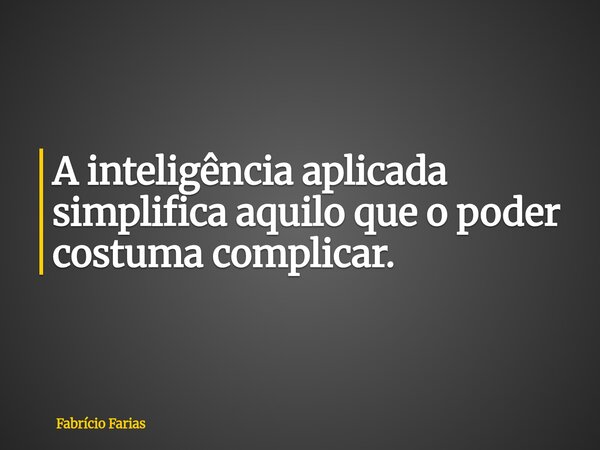 A inteligência aplicada simplifica aquilo que o poder costuma complicar.