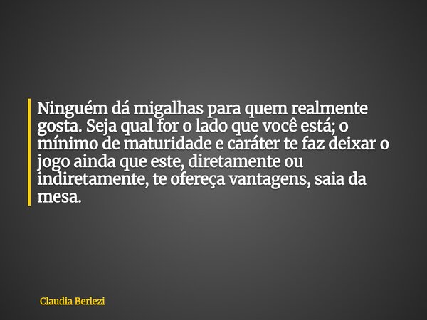 Ninguém dá migalhas para quem realmente gosta. Seja qual for o lado que você está; o mínimo de maturidade e caráter te faz deixar o jogo ainda que este, diretamente ou indiretamente, te ofereça vantagens, saia da mesa.