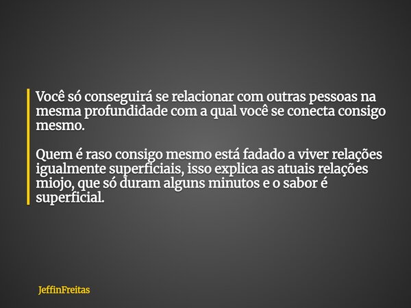 Quem é raso consigo mesmo está fadado a viver relações igualmente superficiais, isso explica as atuais relações miojo, que só duram alguns minutos e o sabor é superficial.