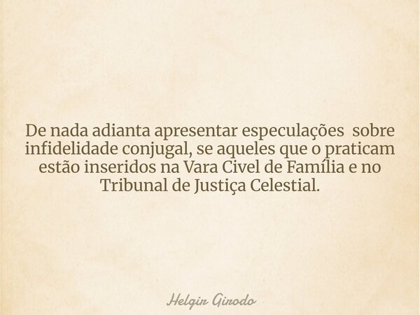 De nada adianta apresentar especulações sobre infidelidade conjugal, se aqueles que o praticam estão inseridos na Vara Civel de Família e no Tribunal de Justiça Celestial.