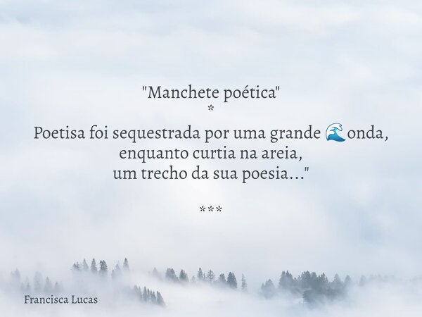 "Manchete poética" * Poetisa foi sequestrada por uma grande 🌊onda, enquanto curtia na areia, um trecho da sua poesia..." ***