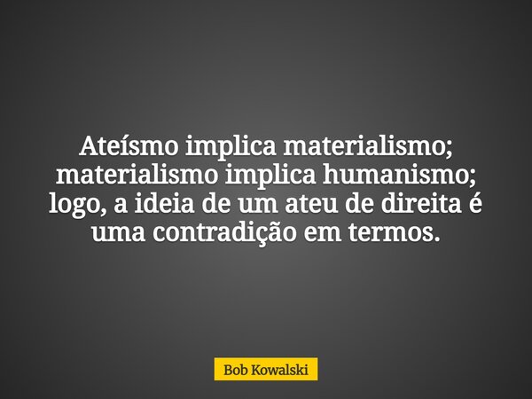 Ateísmo implica materialismo; materialismo implica humanismo; logo, a ideia de um ateu de direita é uma contradição em termos.