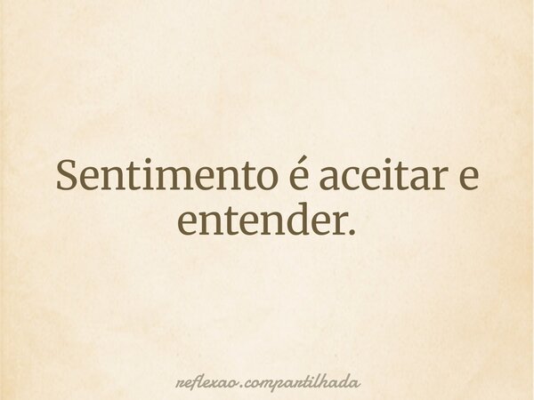 Sentimento é aceitar e entender.