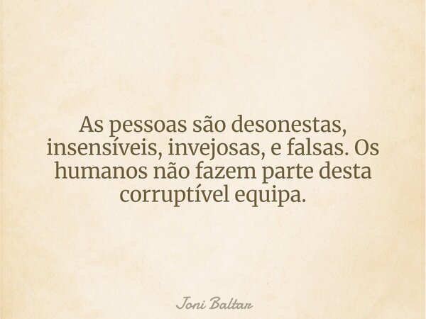 As pessoas são desonestas, insensíveis, invejosas, e falsas. Os humanos não fazem parte desta corruptível equipa.