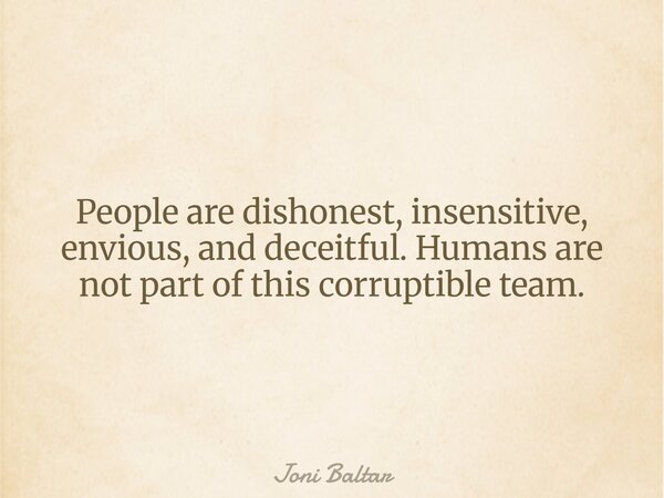 People are dishonest, insensitive, envious, and deceitful. Humans are not part of this corruptible team.