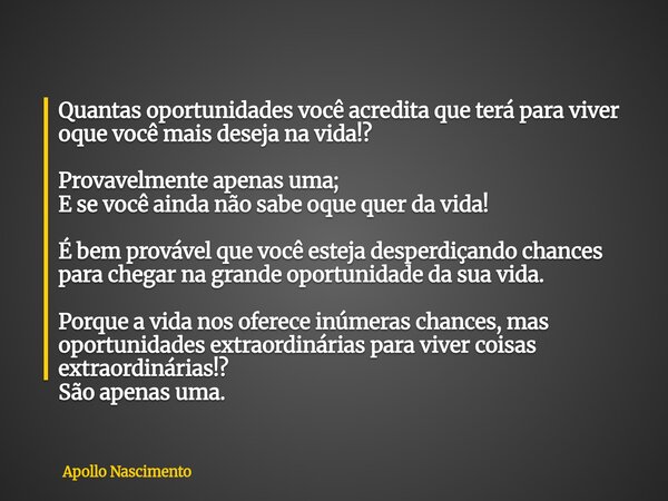 Quantas oportunidades você acredita que... Apollo Nascimento