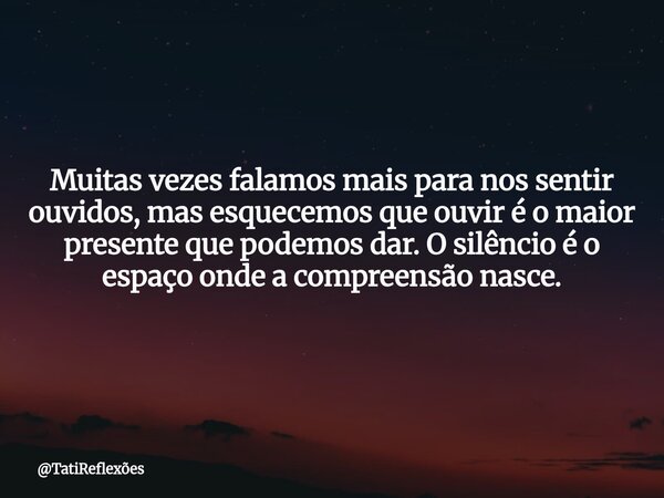 Muitas vezes falamos mais para nos sentir ouvidos, mas esquecemos que ouvir é o maior presente que podemos dar. O silêncio é o espaço onde a compreensão nasce.