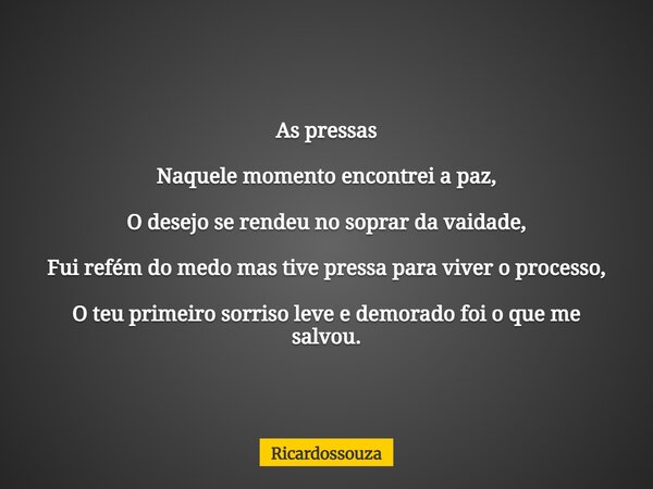 As pressas Naquele momento encontrei a... Ricardossouza