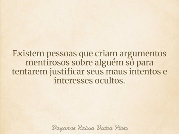 Existem pessoas que criam argumentos mentirosos sobre alguém só para tentarem justificar seus maus intentos e interesses ocultos.