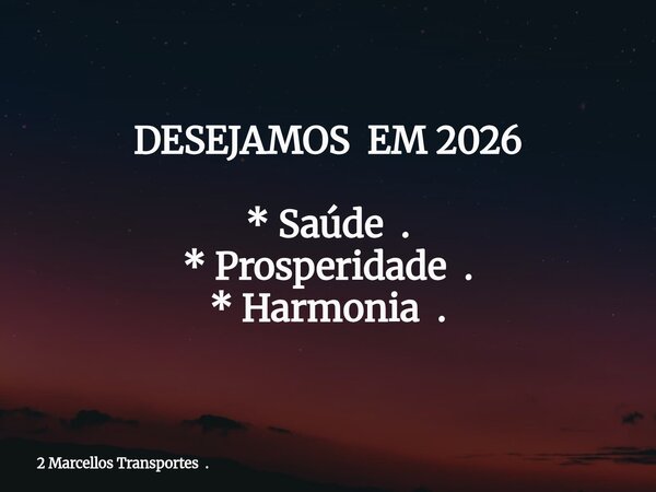 DESEJAMOS EM 2026 * Saúde . * Prosperidade . * Harmonia .