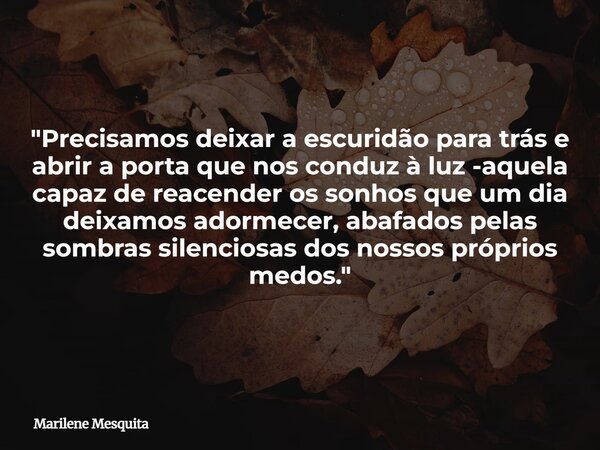 "Precisamos deixar a escuridão para trás e abrir a porta que nos conduz à luz -aquela capaz de reacender os sonhos que um dia deixamos adormecer, abafados pelas sombras silenciosas dos nossos próprios medos."