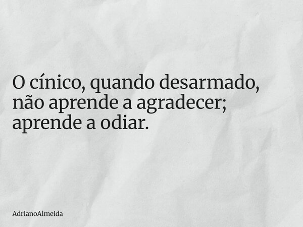O cínico, quando desarmado, não aprende a agradecer; aprende a odiar.