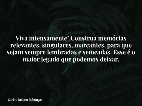Viva intensamente! Construa memórias relevantes, singulares, marcantes, para que sejam sempre lembradas e semeadas. Esse é o maior legado que podemos deixar.