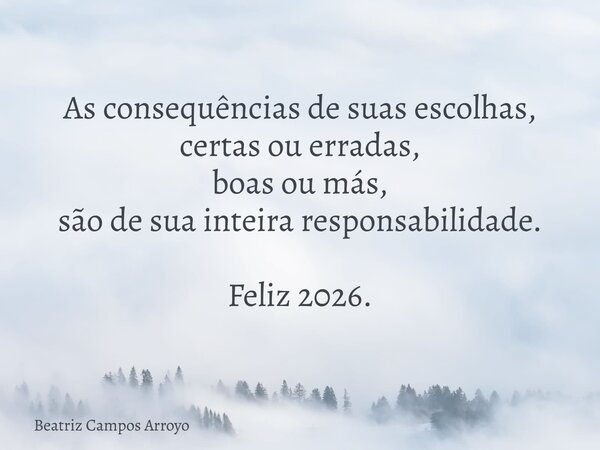 As consequências de suas escolhas, certas ou erradas, boas ou más, são de sua inteira responsabilidade. Feliz 2026.