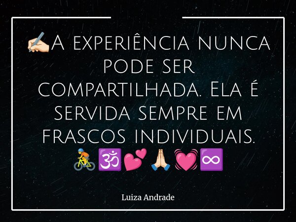 ✍🏻A experiência nunca pode ser compartilhada. Ela é servida sempre em frascos individuais. 🚴🕉️💕🙏🏻💓♾️