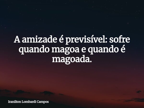A amizade é previsível: sofre quando magoa e quando é magoada.