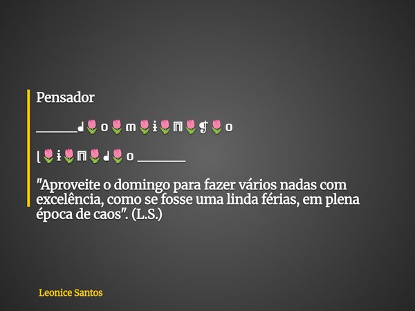 Pensador ______ᖱ🌷០🌷៣🌷ɨ🌷⩎🌷❡🌷០ ɭ🌷ɨ🌷⩎🌷ᖱ🌷០ _______ "Aproveite o domingo para fazer vários nadas com excelência, como se fosse uma linda férias, em plena época de caos". (L.S.)