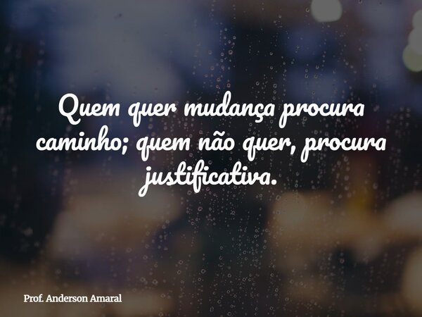 Quem quer mudança procura caminho; quem não quer, procura justificativa.