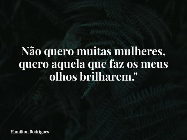 Não quero muitas mulheres, quero aquela que faz os meus olhos brilharem."