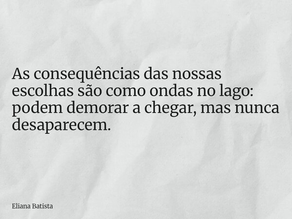 As consequências das nossas escolhas são como ondas no lago: podem demorar a chegar, mas nunca desaparecem.