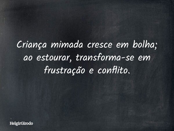 Criança mimada cresce em bolha; ao estourar, transforma-se em frustração e conflito.