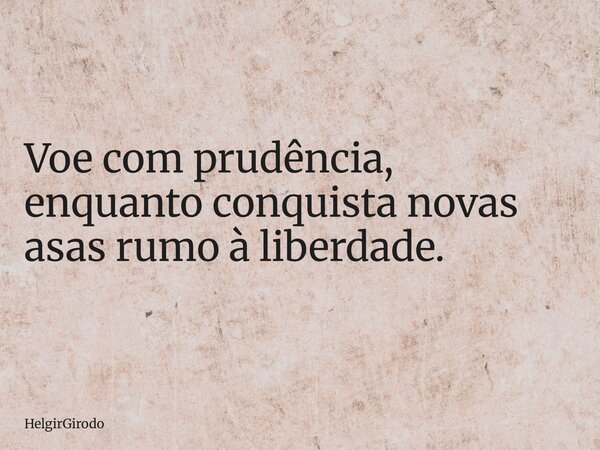 Voe com prudência, enquanto conquista novas asas rumo à liberdade.