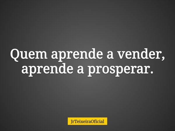 Quem aprende a vender, aprende a prosperar.