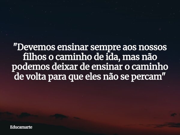 "Devemos ensinar sempre aos nossos filhos o caminho de ida, mas não podemos deixar de ensinar o caminho de volta para que eles não se percam"